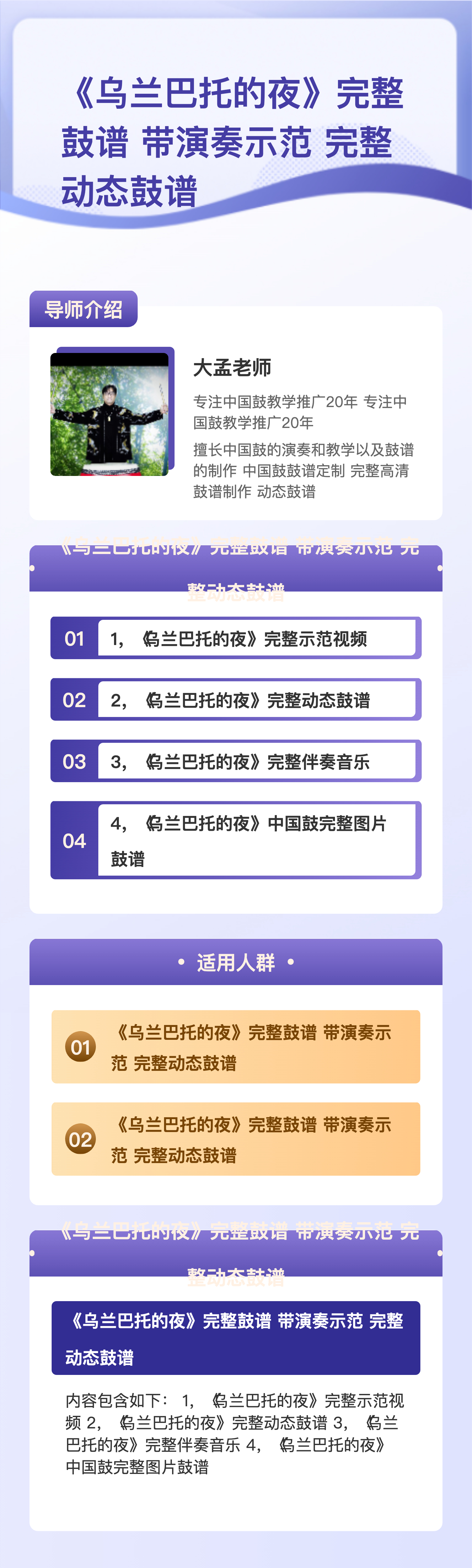 《乌兰巴托的夜》大头针版 完整鼓谱 带演奏示范 完整动态鼓谱